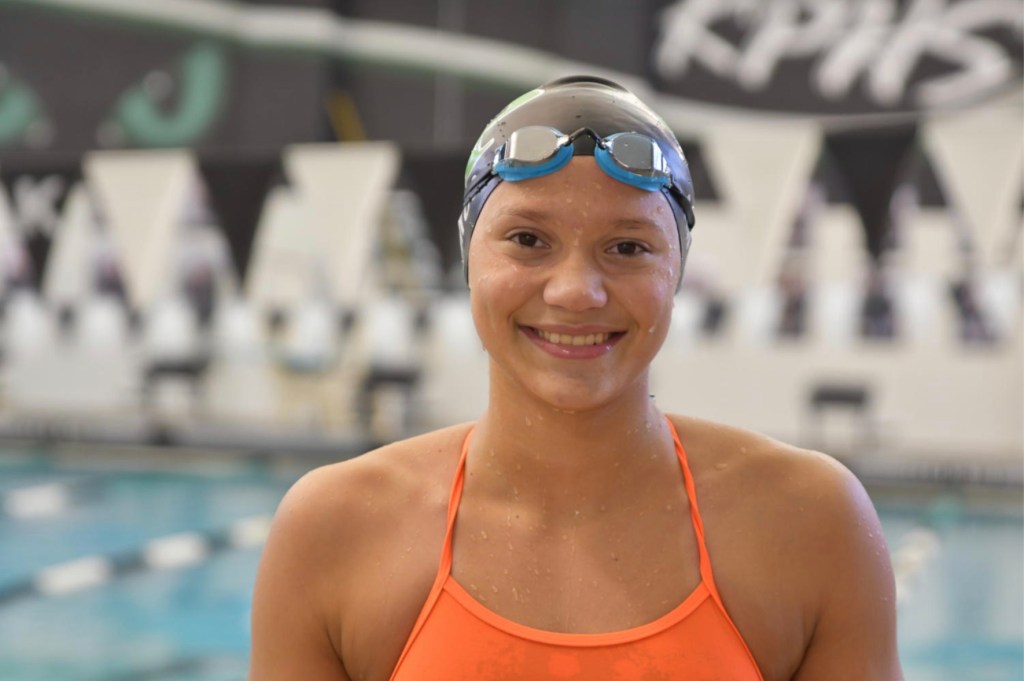 “Having a vision” was the key to my portrait photography. With my flag picture, that meant framing my subject when he swung the flag. For the magazine cover, I spent two hours finding the perfect lighting and pose. I timed the swim portrait before my subject dried off, so the water was caught dripping down her face.